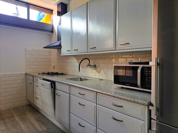 The house is located in a quiet street in a friendly neighborhood, with amenities such as schools and a supermarket within walking distance.