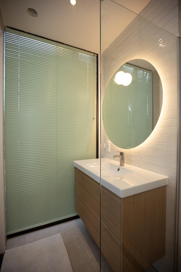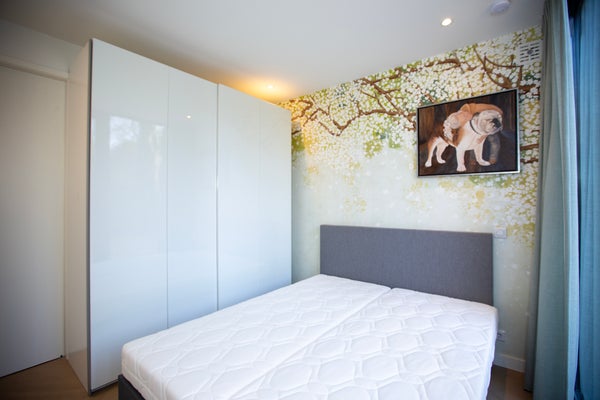Upon entering, you arrive in the hallway that provides access to the various rooms of the home. Immediately on the right-hand side is the separate toilet. Through a glass sliding door you reach the bright living room with open kitchen. On the left-hand side of the property is the bedroom.