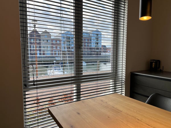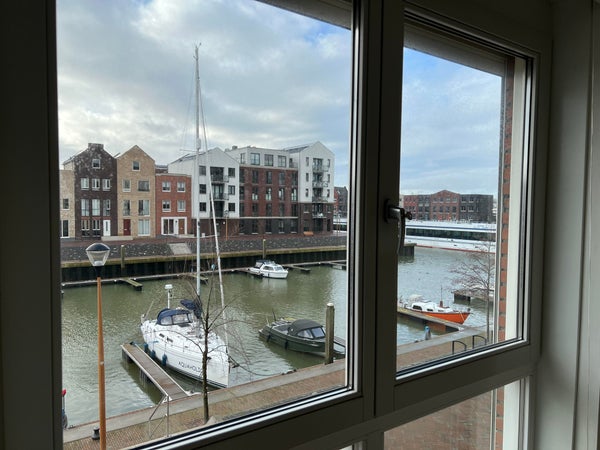 The backyard is located on the northeast side, and at the rear, there is a detached storage shed. At the back, you come onto the communal area where the two private parking spaces are located. In addition to the backyard, the house also has a front garden, which borders the quay and has a view over the water.
