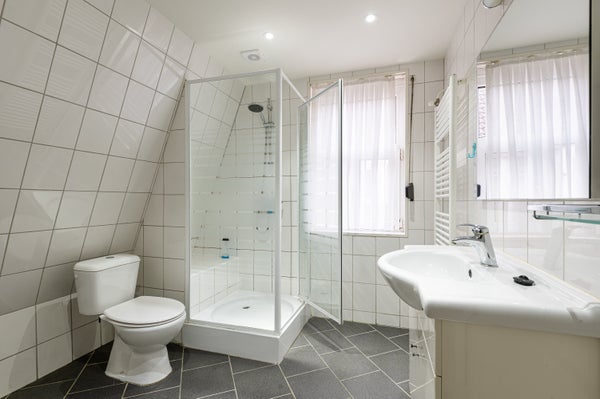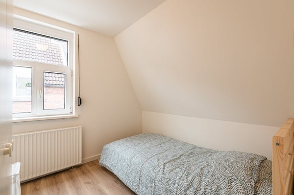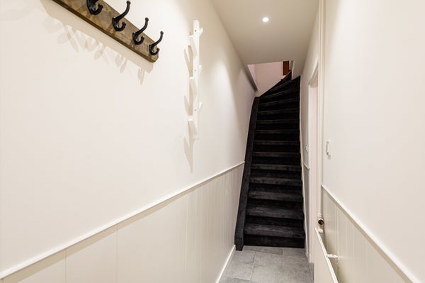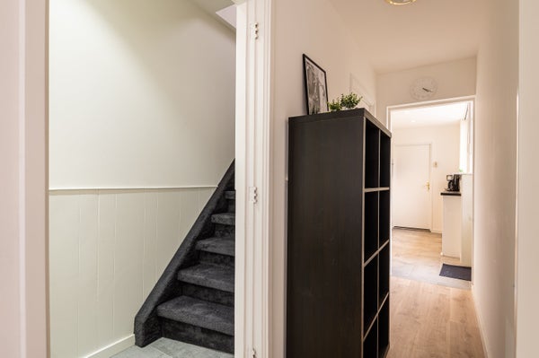 Access through the kitchen to the garden. On the first floor there are two bedrooms and a bathroom with shower,bathroomfurniture and toilet.