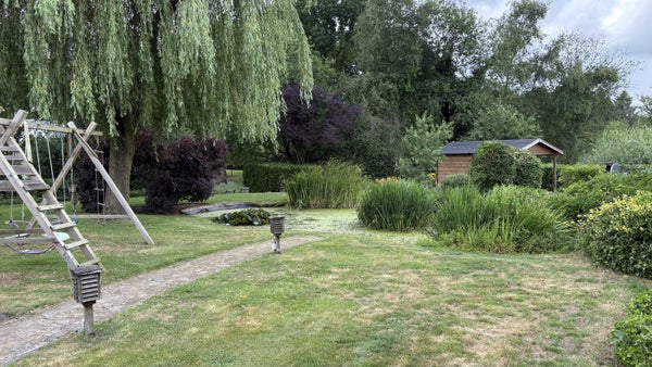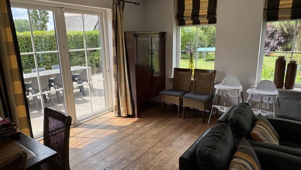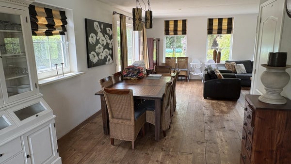 For rent: a detached thatched house with a basement and stunning views at the edge of the golf course, located in Villapark Martensplek. This house combines nature with convenience, close to Hoogeveen. It features an L-shaped living room, an open kitchen, and several bedrooms. The basement includes a bathroom with a sauna and additional bedrooms. Fully insulated with an energy label A, it is a comfortable choice. Rent includes garden maintenance. Pets are not allowed, and there is a minimum rental period of 1 year.