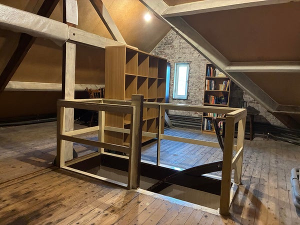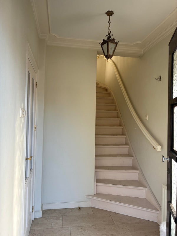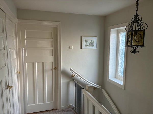 Via the stairs in the hall, you reach an authentic landing on the first floor with beautiful natural light. The landing provides access to two bedrooms, the bathroom, and the second floor.