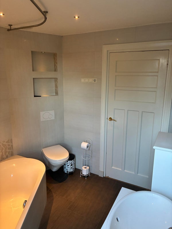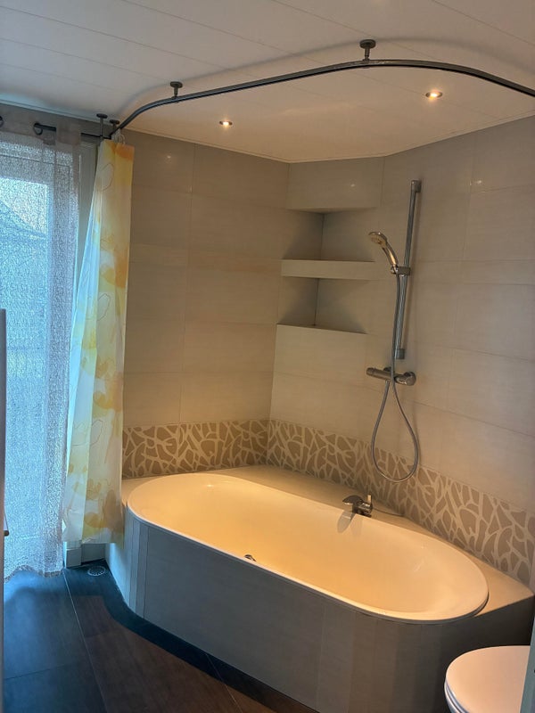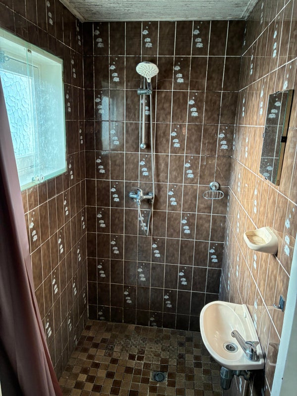 Behind the kitchen is the toilet combined with a spacious walk-in shower.