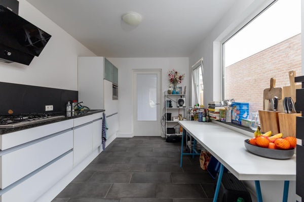 Very beautifully finished 3-bedroom house located on Hoefstraat in Tilburg. The house is equipped with stone tiles on the ground floor, under which the underfloor heating is connected. From the spacious living room, you can walk directly into the kitchen, which is equipped with many built-in appliances such as a five-burner gas stove, combi microwave, dishwasher, refrigerator, freezer, and extractor hood. Through the back door, you come out onto the beautifully landscaped backyard, which is located on the east.