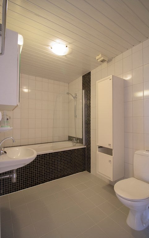 On the second floor, there are three bedrooms in total: two large bedrooms and one smaller bedroom. The bathroom is fitted with a bathtub with shower option, a toilet, and a washbasin.The property includes a private parking space on its own grounds.
