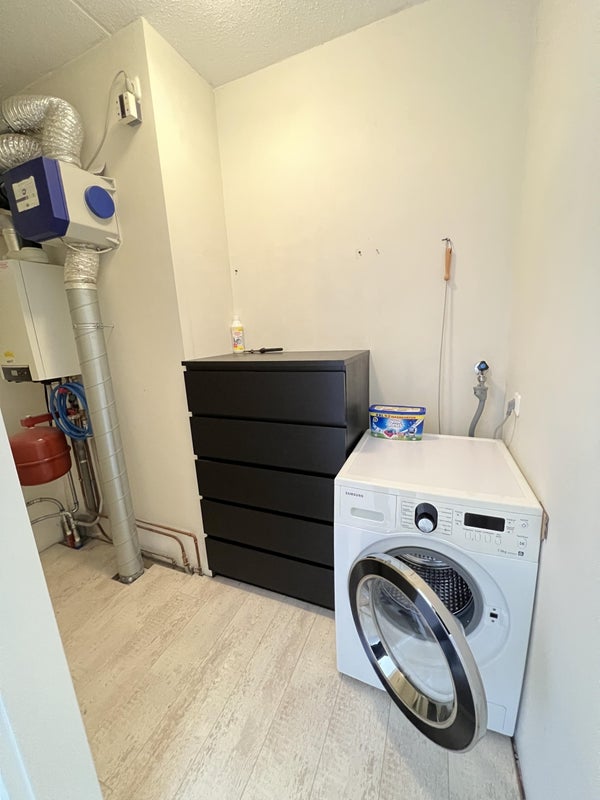 On the first floor, 2 larger bedrooms and 1 smaller one, fitted out as a walk-in wardrobe. Fresh bathroom with bath/shower, washbasin with vanity unit and a second toilet. Finally, there is a separate room for storage and a laundry area.