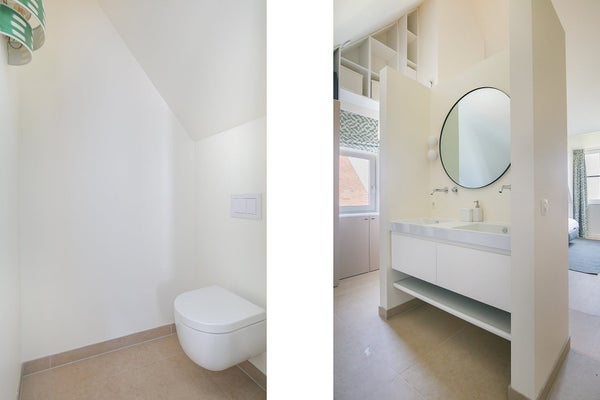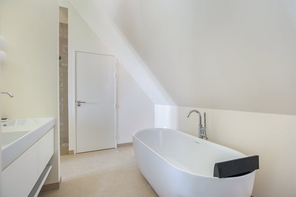 Via a fixed staircase, you reach the second floor. Here, you'll find the master bedroom and the second bathroom with a bathtub and walk-in shower. There is also a toilet on this floor.