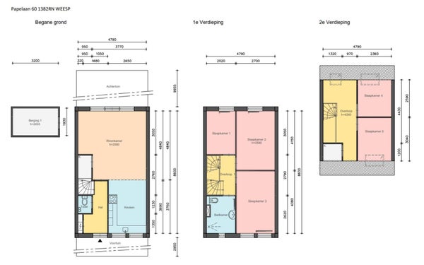 -3 slaapkamers (standaard) 2 extra slaapkamers gecreëerd middels scheidingswand op zolder