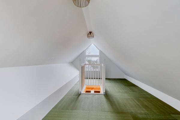 Finally, a loft ladder provides access to a finished attic space that can be used as an extra bedroom or study.