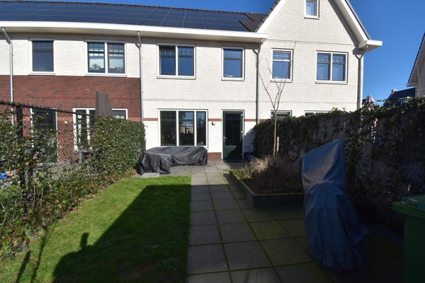 In the garden, there is a tiled path to the storage room, and a sun terrace at the rear façade. The storage room is large enough to store bicycles, tools, and other items. There is also an outdoor tap and outdoor lighting.
