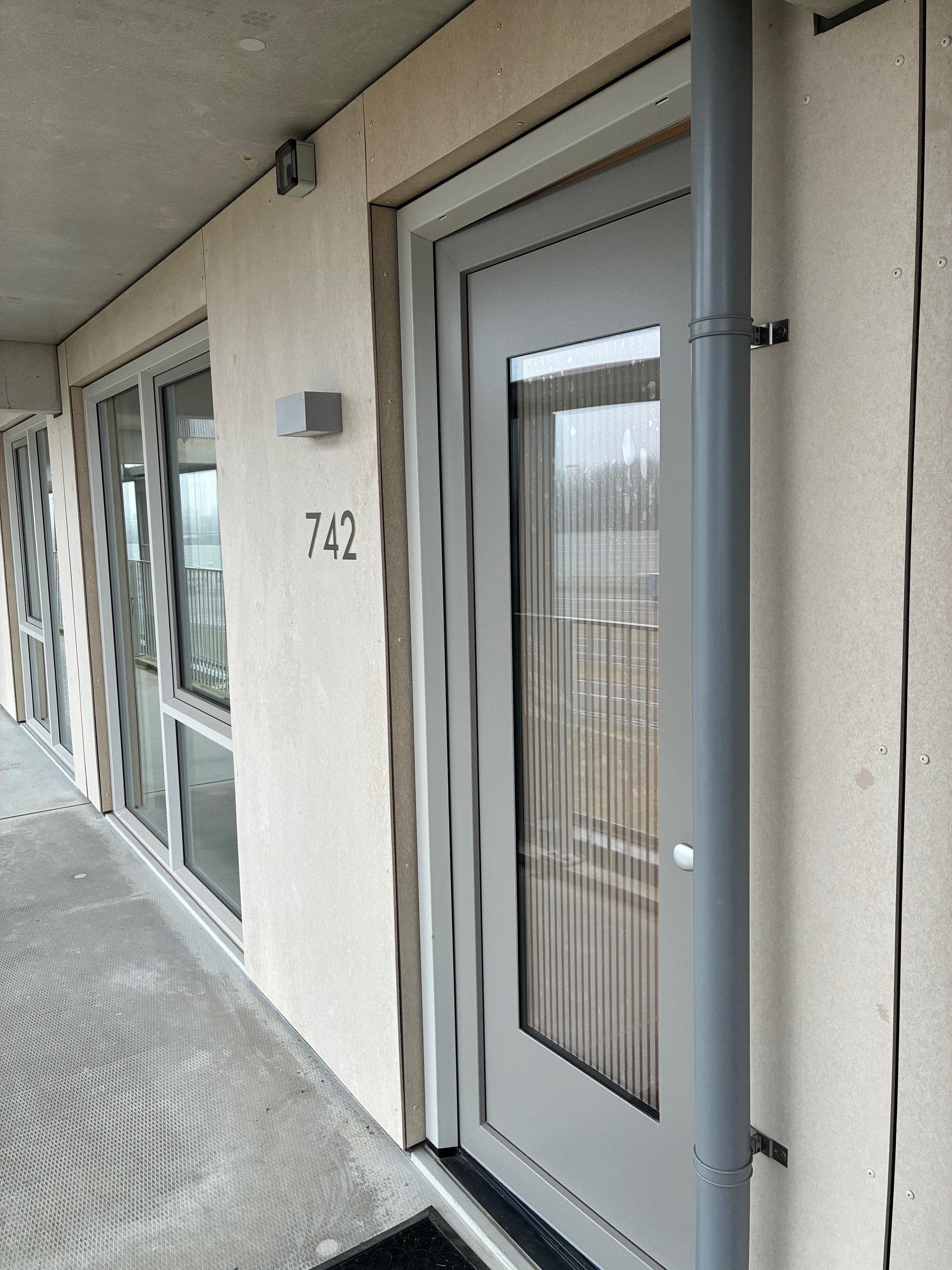 A home is available on the 4th floor of the new Verde Vista complex. This home includes 1 bedroom and a spacious storage room. The bathroom comes with a shower, sink, and toilet. The living room features an open kitchen equipped with a cooking plate and extractor hood, providing access to a balcony overlooking the courtyard. The home is ready for immediate occupancy with flooring in place. Verde Vista is designed for seniors, with social rental units for those aged 65+ and private sector units for those aged 55+. Residents can take part in activities like cooking, gardening, and walking together. There are communal spaces and professional care is available as needed.