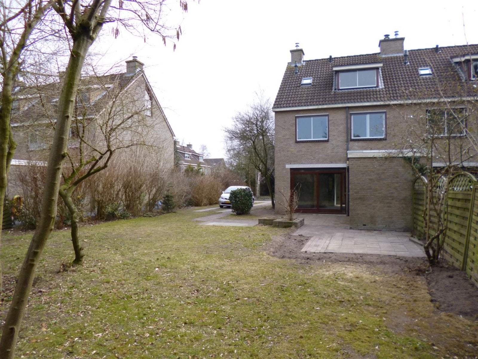 This spacious corner house at Entinge 34 in Roden features a practical layout. On the ground floor, you find the entrance with a hall, meter cupboard, and toilet, as well as an L-shaped living room of about 30m2. The open kitchen of around 10m2 leads to a utility/storage room also of approximately 10m2. Upstairs, there are three bedrooms measuring 16m2, 12m2, and 7m2, along with a bathroom with a bathtub, sink, and second toilet. The second floor has a shower area of 4m2 and a spacious attic/bedroom of about 17m2. Outside, the property includes front and back gardens and an attached stone garage of approximately 18m2.