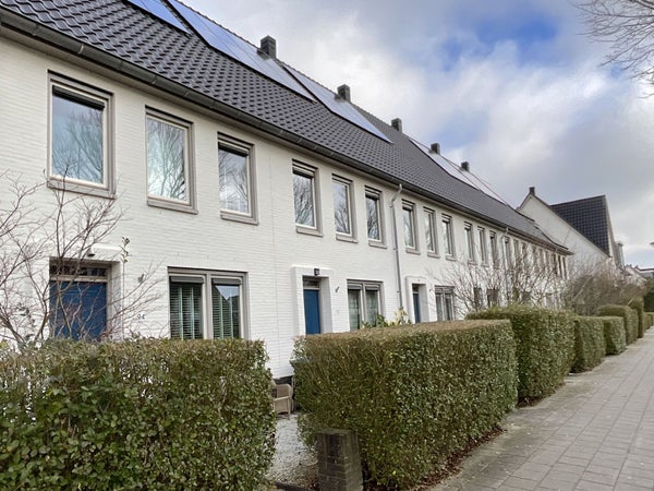 Par l'entrée, vous entrez dans le couloir, où se trouve l'élégante salle de bain avec toilettes suspendues et lavabo. Le salon orienté vers le jardin dispose d'une cuisine ouverte à l'avant de la maison. C'est une cuisine moderne, équipée d'une plaque de cuisson à induction avec hotte, d'un lave-vaisselle, d'un réfrigérateur et d'un four combiné/micro-ondes. Toute la maison est équipée de chauffage/refroidissement par le sol et de parquet. Par les portes-fenêtres, vous accédez au jardin. Dans le jardin, il y a un abri de jardin en bois. Le jardin est également équipé d'un accès arrière.