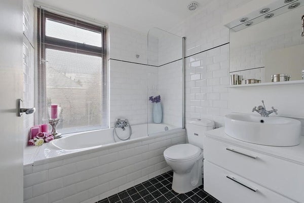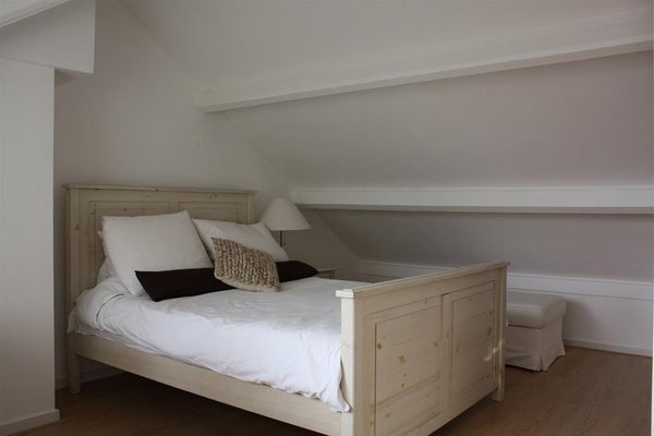 1er étage : palier, deux chambres spacieuses, bureau/chambre, salle de bain avec baignoire (incl. douche), lavabo et toilettes.