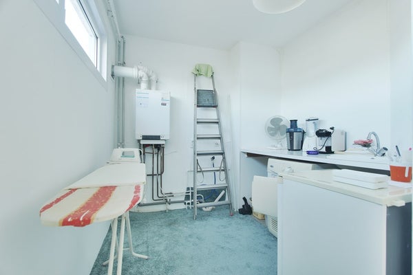 Une buanderie séparée à l'avant et une troisième chambre à l'arrière avec un accès direct à une terrasse en toit plein sud.
