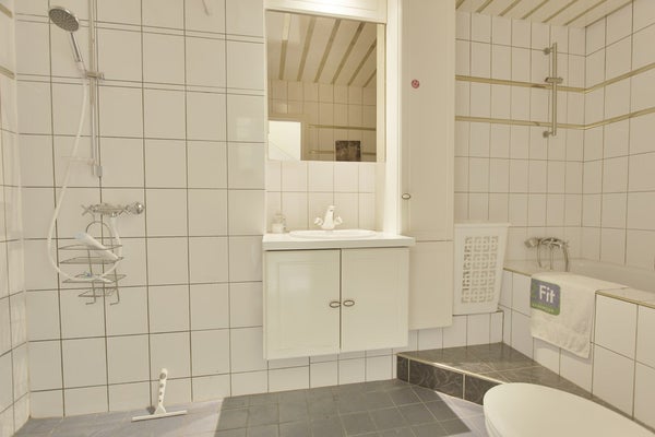 En entrant, vous êtes accueilli par un couloir lumineux et spacieux avec beaucoup d'espace pour les manteaux, les chaussures et le rangement. Un cabinet de toilette séparé avec lavabo se trouve également ici.