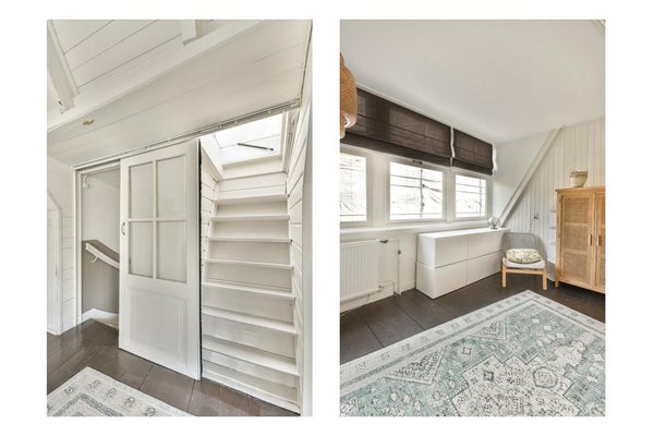 Au rez-de-chaussée se trouve la cuisine ouverte équipée d'un four, d'une cuisinière à gaz, d'un réfrigérateur et d'un lave-vaisselle. La salle à manger est meublée avec du nouveau mobilier, y compris une table ronde en marbre. Il y a également des toilettes et un espace de rangement à cet étage. Au premier étage, vous trouverez le salon lumineux où vous pourrez vous détendre tranquillement devant la cheminée avec manteau. Un salon confortable a été créé avec un canapé et des chaises. Au deuxième étage se trouve la spacieuse pièce de vie/chambre à coucher avec un canapé-lit. À côté se trouve la salle de bain, qui dispose de magnifiques carreaux de sol, d'une baignoire, d'une douche à l'italienne et d'un lavabo. Il y a aussi des toilettes sur le palier. Au troisième étage se situe la chambre spacieuse avec un espace de rangement suffisant. Cette pièce dispose d'un grand lit et de suffisamment de fenêtres pour une bonne luminosité. Toutes les chambres offrent une vue magnifique sur le canal. L'ensemble de l'appartement a été récemment équipé de double vitrage. En ce moment, une pompe à chaleur est en cours d'installation, ce qui rend le logement très durable. De plus, l'appartement dispose d'un espace de rangement (cave) au sous-sol.