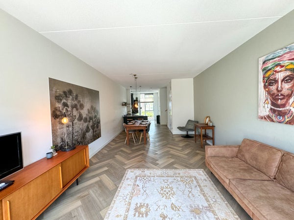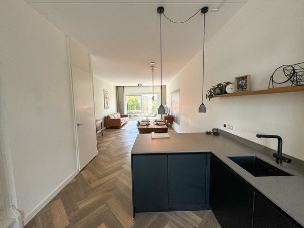 Au rez-de-chaussée, vous entrez dans un hall avec des toilettes. De là, vous accédez à la cuisine-salon à l'avant de la maison, équipée d'appareils intégrés. À l'arrière se trouve le spacieux salon avec des portes coulissantes donnant sur le jardin. Le jardin dispose d'un accès par l'arrière et offre suffisamment d'espace pour s'asseoir à l'extérieur. Il y a également un abri de jardin supplémentaire, idéal pour les vélos et le stockage.