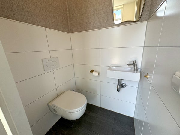 À l'étage, vous trouverez trois chambres de taille confortable et une salle de bains moderne. Sur le palier, il y a une pièce séparée pour la machine à laver et le sèche-linge.