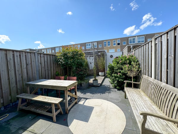 À l'arrière se trouve un joli jardin avec accès par l'arrière et un abri de jardin. À l'avant, il y a une petite cour où vous pouvez vous asseoir confortablement à l'extérieur.