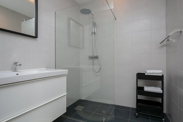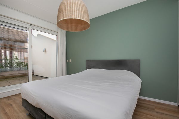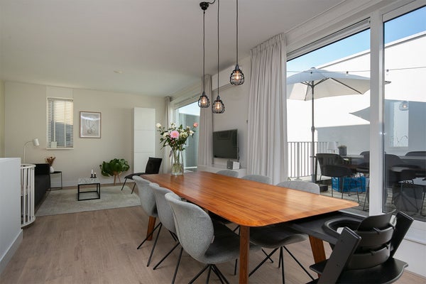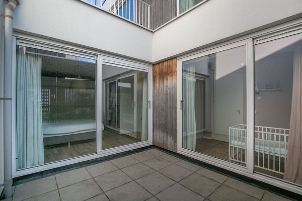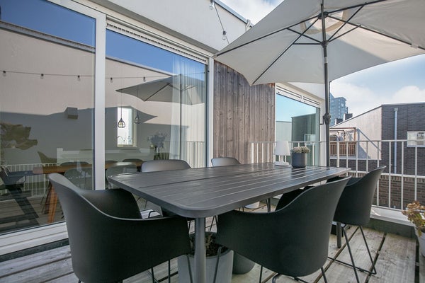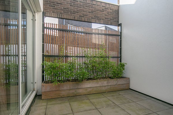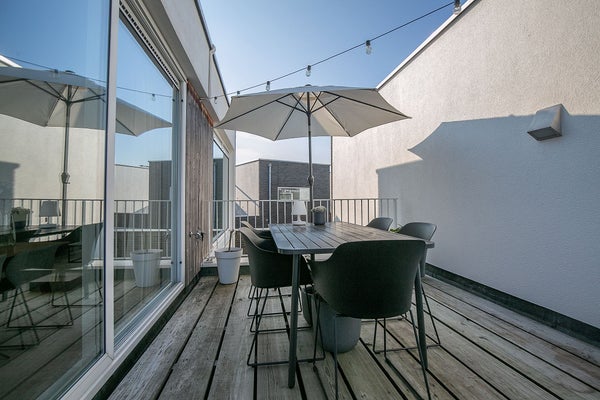 Maison de ville moderne et élégamment finie (MAISON D'ANGLE) avec une place de parking privative et un débarras dans le garage de stationnement sécurisé, une cuisine équipée de luxe, une petite cour fermée, une terrasse sur le toit, un salon lumineux et ensoleillé et deux chambres. La propriété est très bien entretenue et est idéale pour ceux qui souhaitent vivre près du centre mais apprécient également le calme. Cet ensemble "TWENTYSEVEN" a remporté le prix d'architecture en 2009. Il y a également un local à vélos commun.