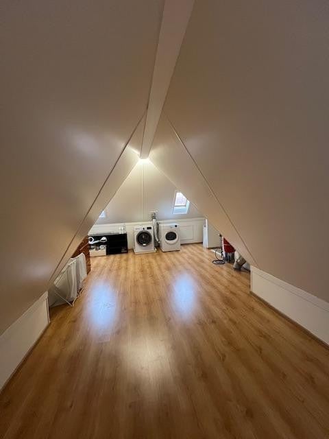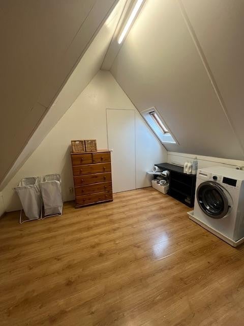 Spacieuse mansarde/chambre 4. Une pièce séparée pour la machine à laver et le sèche-linge ainsi qu'un espace de rangement supplémentaire.