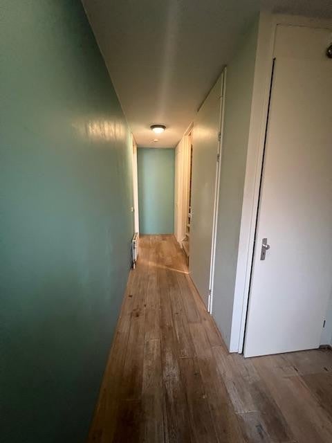 Dégagement avec accès aux 3 chambres. La salle de bain est carrelée et équipée d'une douche, d'une baignoire, d'un 2ème WC et d'un double lavabo.