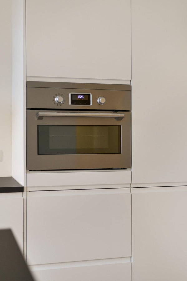 La cuisine est ouverte et entièrement nouvelle, et offre également une énorme quantité d'espace de rangement, une plaque de cuisson à induction avec hotte aspirante, un combiné réfrigérateur/congélateur, un lave-vaisselle et un four à micro-ondes combiné/four.