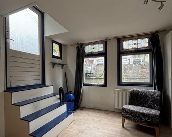 Disponible immédiatement, un (partiellement meublé) houseboat est disponible au Lopendediep à Groningen. Le houseboat dispose d'une chambre (environ 15m²), d'un hall/entrée, d'une salle de bain, d'un salon (environ 13m²), d'une cuisine séparée (environ 7m²) et d'un toilette séparé. Le houseboat est chauffé centralement et les services publics doivent être souscrits par vos propres moyens. La cuisine est équipée d'un réfrigérateur, d'une machine à laver et d'un réchaud à gaz. La salle de bain est chauffée et dispose d'une douche avec robinet mélangeur thermique.