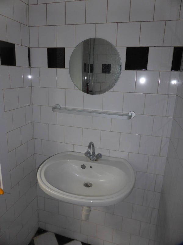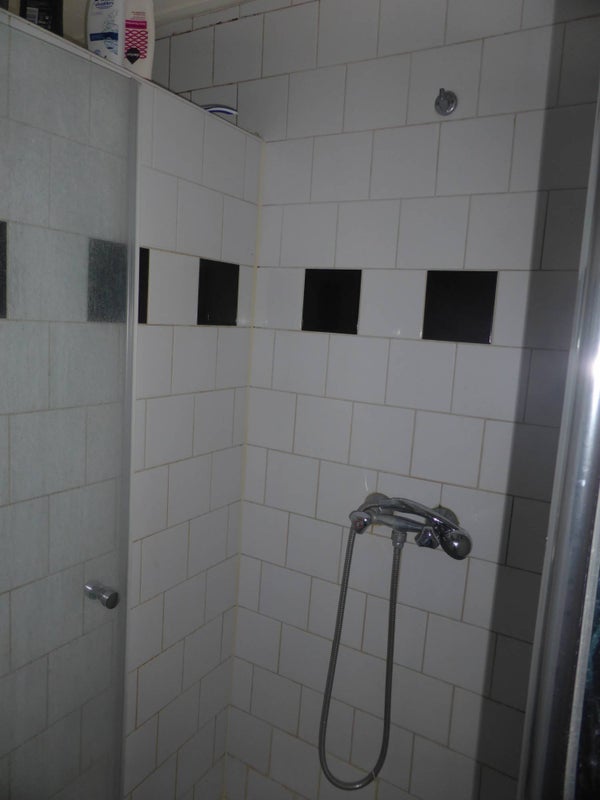 La salle de bain avec douche et toilettes est partagée avec plusieurs résidents.