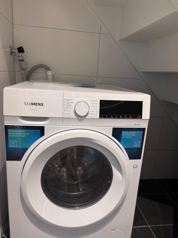 Furthermore, there is a laundry room on the ground floor where a washer/dryer combination is installed.