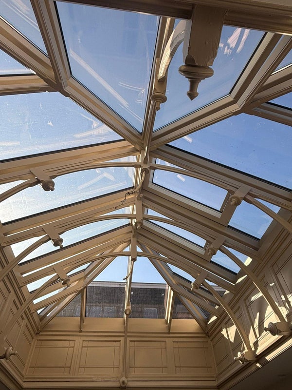 On the first floor is the living room, where the real star of the show is located....the monumental glass roof! This is truly what makes this home unique and what you will never tire of.