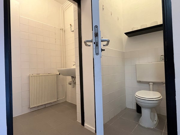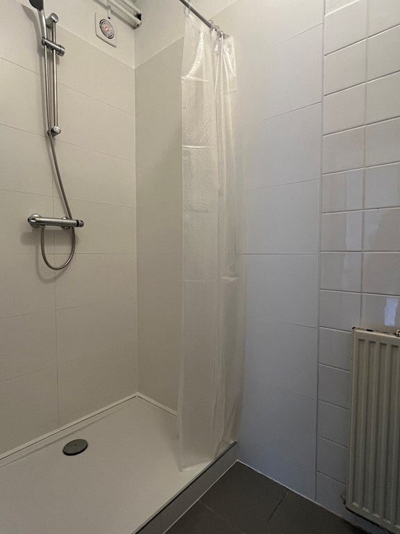 Dans le couloir, se trouvent les toilettes et une douche avec lavabo.