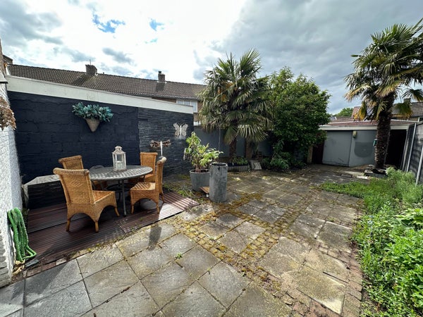 Depuis la cuisine, vous avez accès au jardin spacieux qui dispose d'une entrée arrière et d'un abri de jardin.
