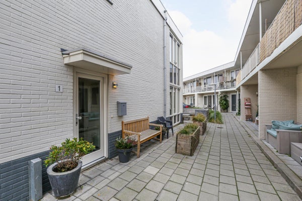 Sur le côté de la maison, se trouve un jardin/espace latéral avec un canapé de jardin confortable : un bel endroit pour se détendre à l'extérieur.