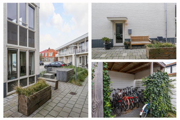 En face du parking, il y a un abri à vélos couvert. De plus, il y a un abri à vélos verrouillable et une pièce séparée avec des armoires de rangement pour un stockage supplémentaire.