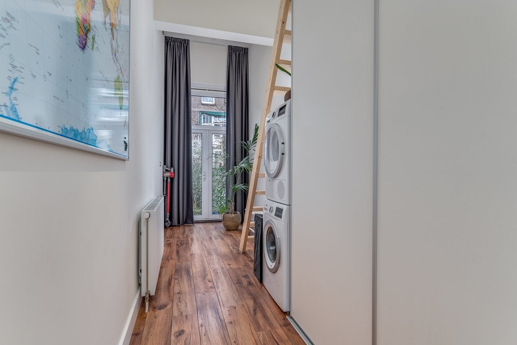 Cet appartement élégant et spacieux au rez-de-chaussée, situé dans le cœur de Kralingen, dispose d’un magnifique jardin. Idéalement situé près de la rue commerçante Lusthofstraat, à seulement 150 mètres de la station de métro Voorschoterlaan. L’aménagement comprend un hall avec un compteur électrique mis à jour et un espace de rangement, une cuisine-salle à manger d'environ 22 m² équipée d'appareils modernes, et un salon de 4,8 m x 4,8 m avec une cheminée authentique et un plafond haut. La grande chambre avec un lit boxspring offre une vue sur le jardin, et une véranda idéale pour un bureau. La salle de bain attenante comprend une baignoire sur pattes et une douche à effet pluie. Le jardin bien conçu, avec une terrasse en bois et un coin salon, est orienté à l’ouest. L'appartement présente une superficie habitable de 111 m², 3 pièces, et est entièrement meublé. Les charges s’élèvent à 150 € par mois.