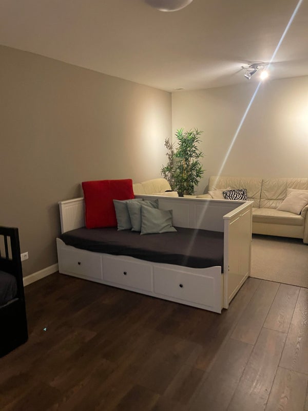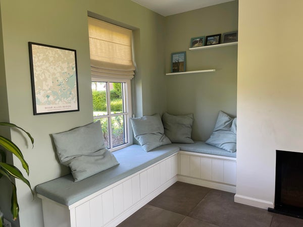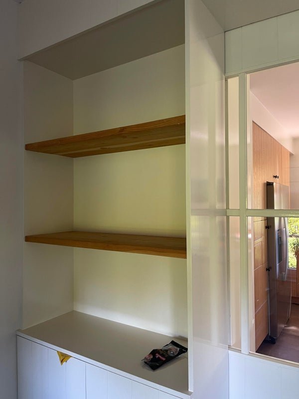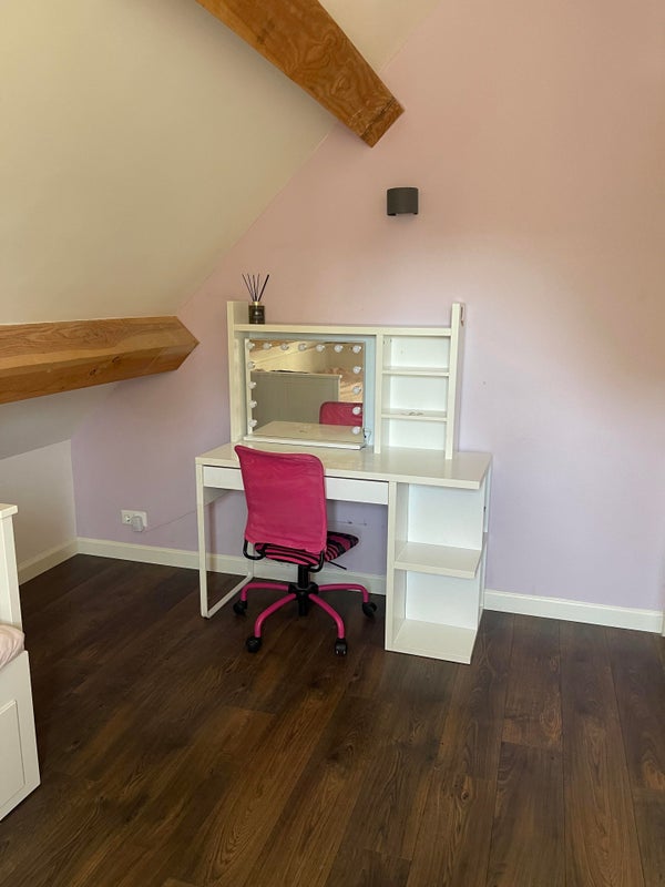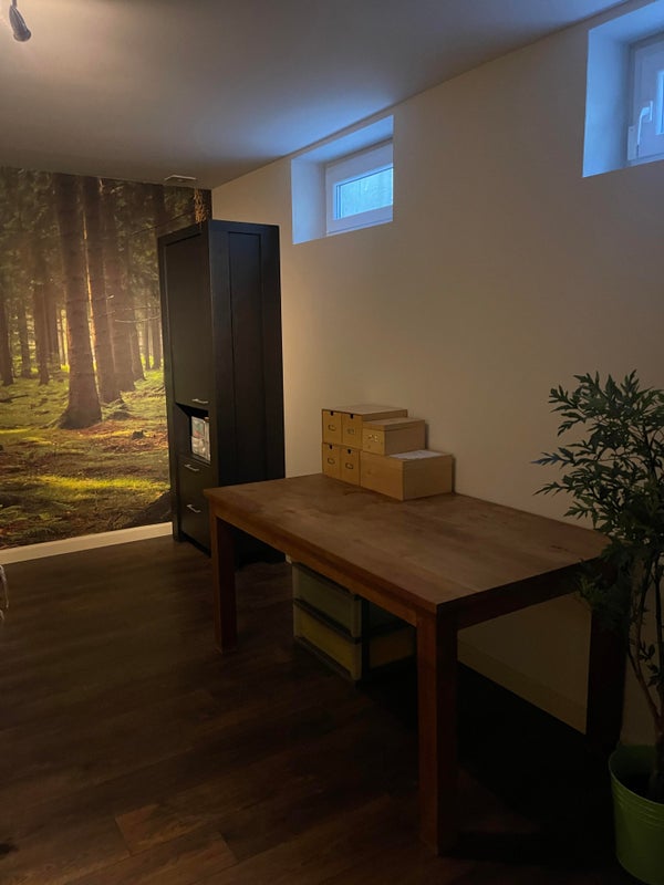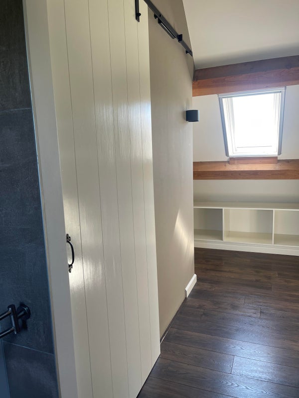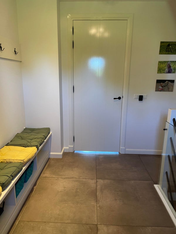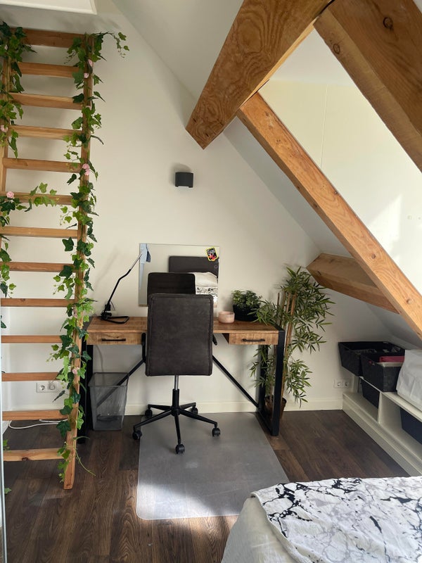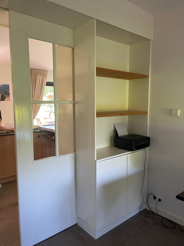 Depuis la cuisine, vous avez accès à un bureau par des portes coulissantes, ce qui est équipé de 2 placards intégrés et peut bien sûr aussi servir de chambre pour jouer ou de salle de télévision.