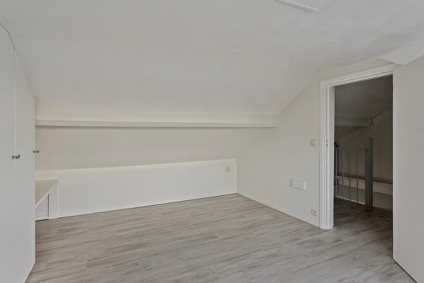 Quatrième chambre avec rangement intégré et espace de rangement sous le toit en pente.