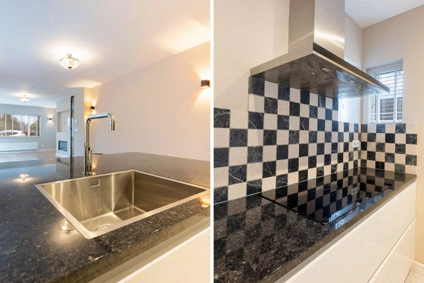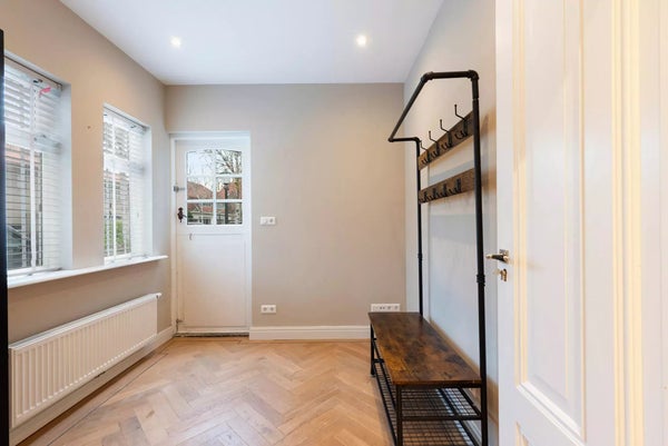 La cuisine ouverte de luxe est entièrement équipée d'appareils de haute qualité, y compris un réfrigérateur à vin, une plaque de cuisson à induction et un Quooker. De la cuisine, vous avez accès au cellier avec de l'espace pour un lave-linge et un sèche-linge ; c'est aussi là que se trouve la chaudière. De plus, il y a une chambre (bureau) séparée au rez-de-chaussée, parfaite comme bureau ou espace de loisirs.