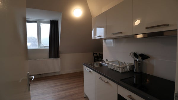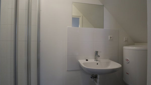 The studio is fully furnished and has its shower, kitchen and sink. The toilet is common as well the washing machine.