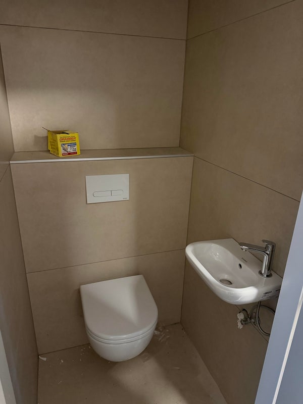 The new kitchen is equipped with built-in machines (electric stove, combi-oven, fridge-freezer). Bathroom with walk-in shower, sink and mirror. Space for washing machine / dryer and toilet in the hall. Washing and drying machine included.