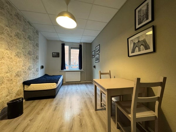 This place is made for an unforgettable semester! Thanks to its central location, you can easily walk to the city centre and catch quick connections to campus. Wi-Fi is included, your room comes fully furnished with a desk, and even bed linen and towels are ready for you. On top of that, you’ll feel the strong community vibe with a shared kitchen, a cozy common living area, and a courtyard to hang out in. And yes—there’s plenty of space to safely store your bike too.