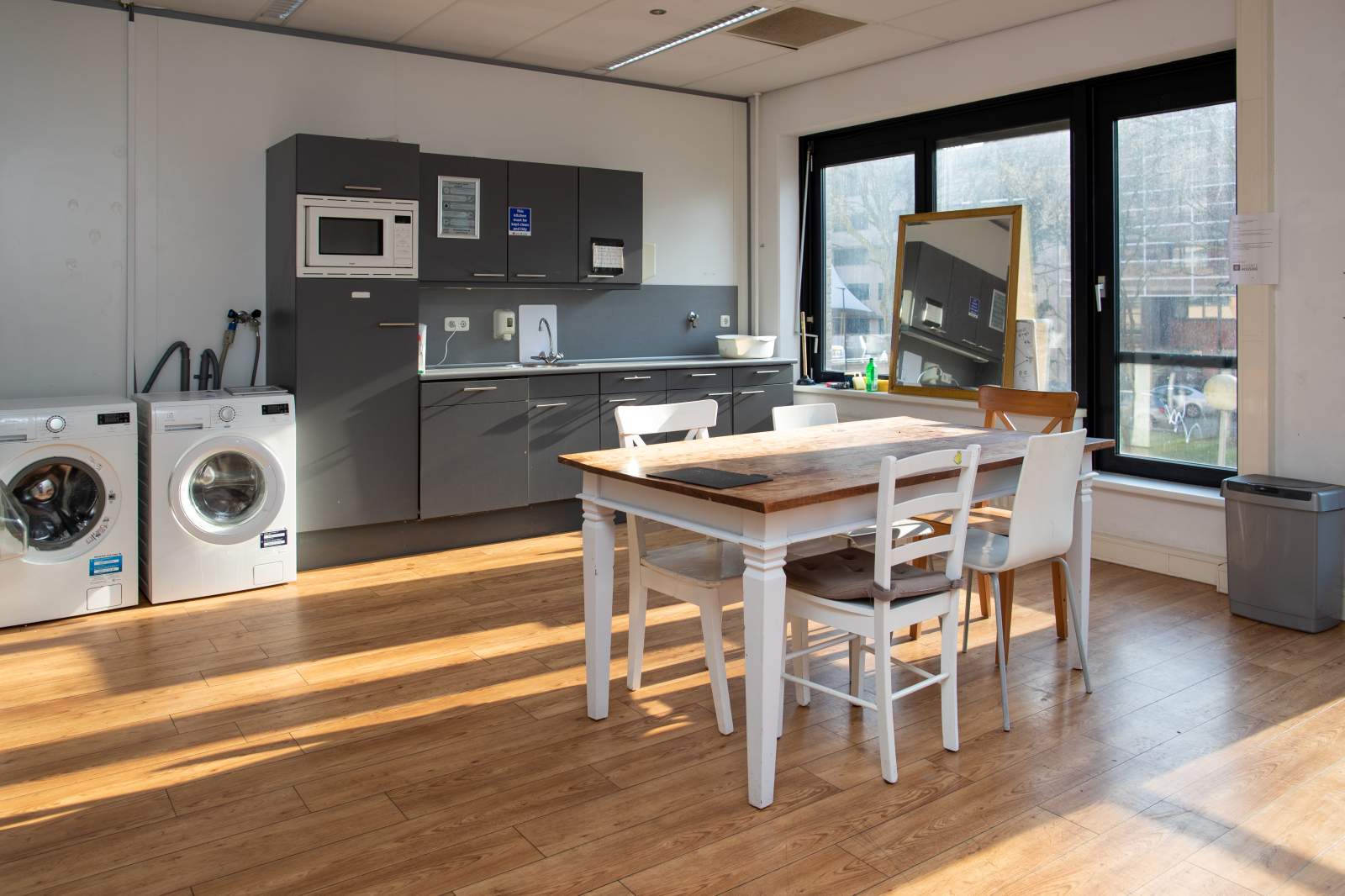 Schipholweg 101 A–K in Leiden offers comfortable living in a central location. Surrounded by shops, supermarkets, and restaurants, Leiden Centraal Station is just 300 meters away, making it very convenient. The historical center of Leiden is also within walking distance. Each unit features a private living/sleeping area, while the kitchen, bathroom, toilet, and laundry room are shared and fully furnished, inclusive of kitchen appliances and washing machines. Common spaces are professionally cleaned weekly. Parking is available on-site, and there is a covered bike storage. The rent is €739 per month, including heating, water, electricity, service charges, and internet. Available from 01-05-2026, with an area of 19 m2, suitable for one resident.