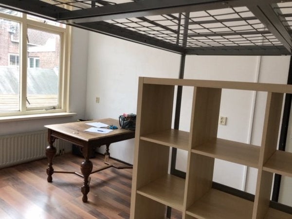 At Haarlemmerstraat will be a room available which is around 16m2 and has a kind of void where you can sleep, a build-in closet and its own sink. The kitchen and bathroom/toilet are shared. It is very light in the room because of large windows. You can also access a shared roof terrace.