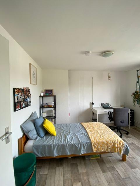 The room (13m2) is located on the second floor at the rear. The student room is equipped with a bed, desk, and closet.
