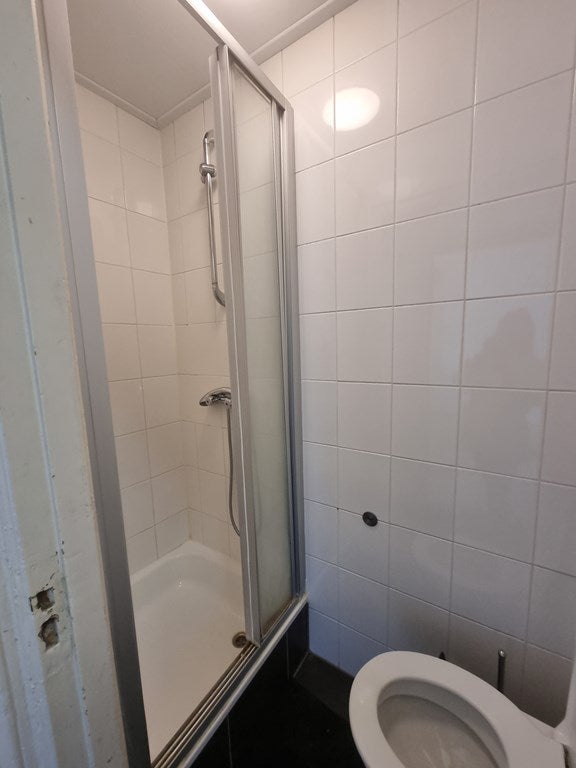Suddivisione: ingresso condiviso al piano terra, scale per il 2° piano, ingresso al soggiorno nella parte anteriore di circa 19 m². Accesso alla camera/sala studio separata di circa 4,7 m² tramite il soggiorno. Doccia/toilette separata nel corridoio e cucina separata sul retro di circa 6 m² dotata di elettrodomestici (lavatrice, piano cottura in ceramica, cappa di aspirazione, frigorifero con congelatore e forno a microonde combinato) da condividere con 1 persona. Terrazza sul retro che deve essere condivisa.
