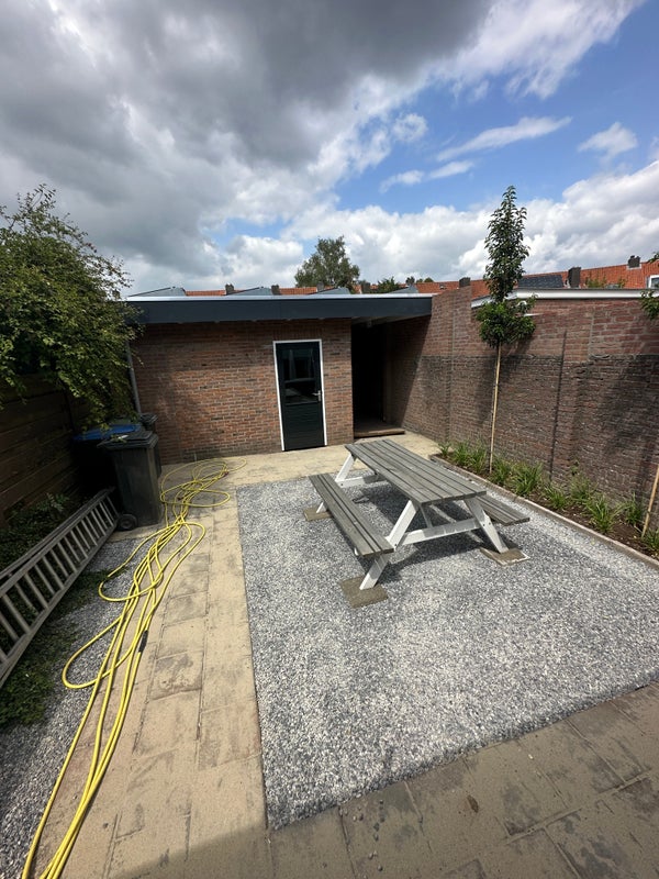 Ci sono 5 camere da letto completamente arredate. Questa camera è di 17m2. Ogni camera dispone del proprio bagno, doccia e cucinotto. Inoltre, c'è una spaziosa cucina in comune, un giardino, una lavanderia e uno spazio di magazzino. Nello spazio di magazzino c'è uno spazio separato per ogni camera per lo stoccaggio. Condividerai lo spazio abitativo con altri 4 professionisti. Lo spazio abitativo sarà occupato da un massimo di 5 persone. Ci sono 5 bagni, 5 WC e 1 cucina disponibili.