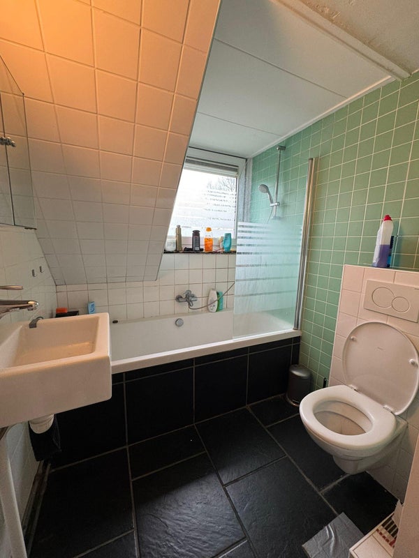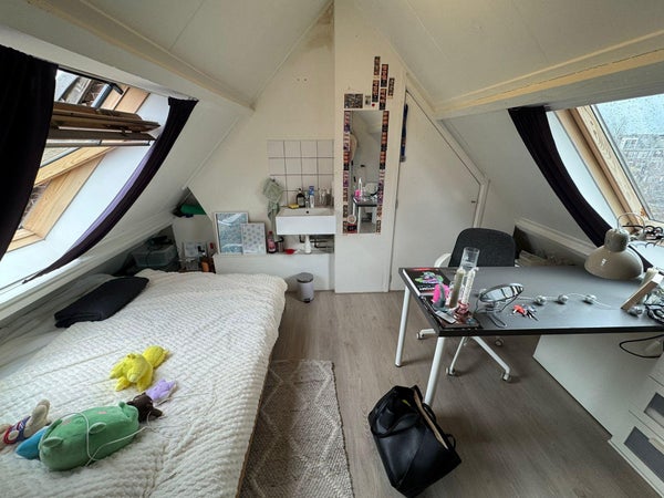 Camera mansardata pulita in una casa ordinata. La stanza è di circa 12m² ed è dotata di un lavandino e di un armadio a muro. L'appartamento ha in totale 3 stanze che condividono la cucina e il bagno. La cucina separata è dotata di frigorifero, piano cottura a gas a 4 fuochi e cappa aspirante. Il bagno è dotato di vasca, doccia e mobile lavabo. Inoltre, c'è uno spazio separato per la lavatrice nell'abitazione. L'edificio è ben rifinito.