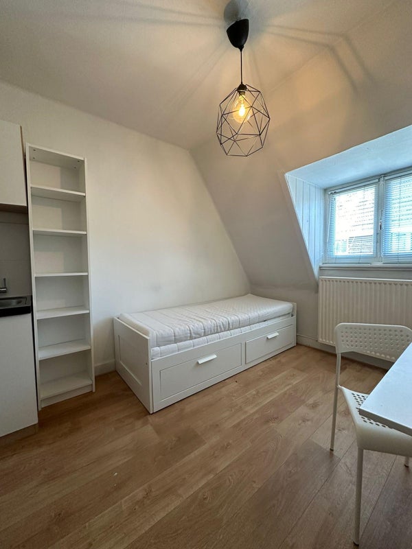 Bella camera ammobiliata in affitto in Eburonenweg 2 a Maastricht. La camera è dotata di un angolo cottura privato e si trova in un edificio pulito e ben curato. Il bagno è condiviso con gli altri residenti.